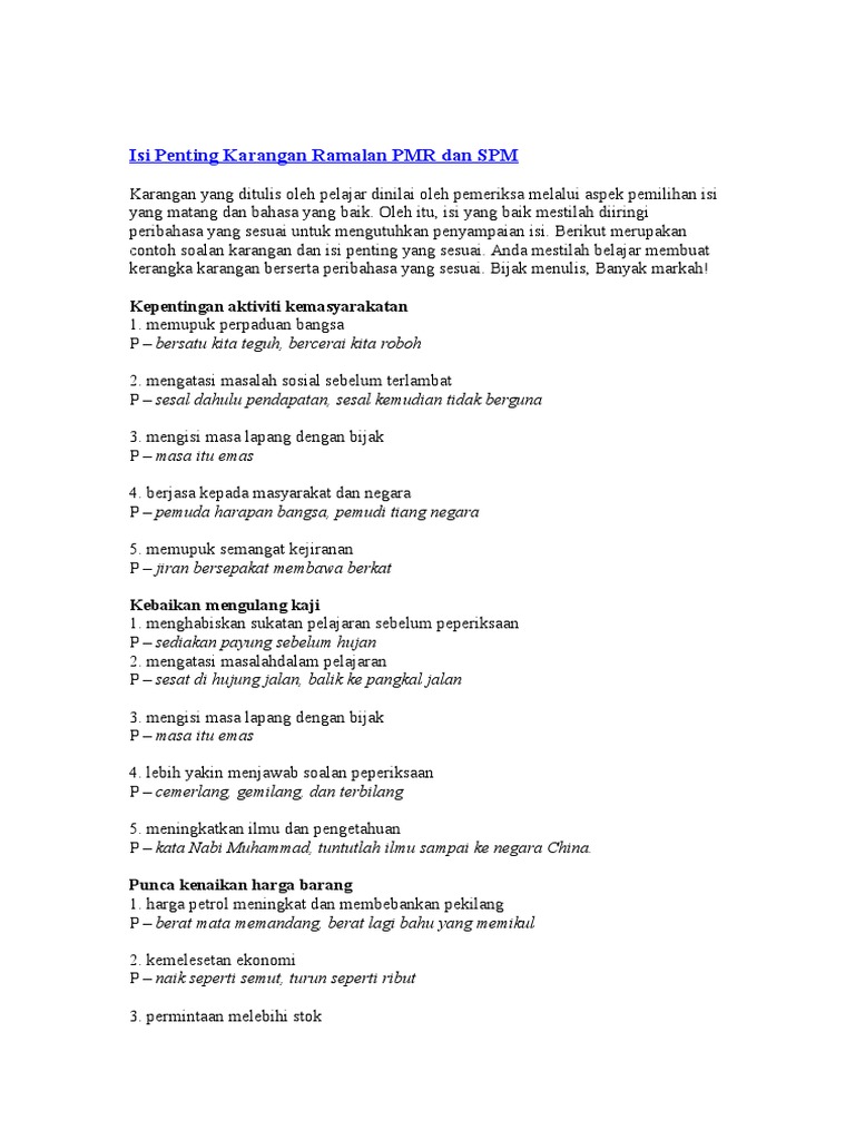 Isi Penting Karangan Ramalan Pmr Dan Spm Pdf